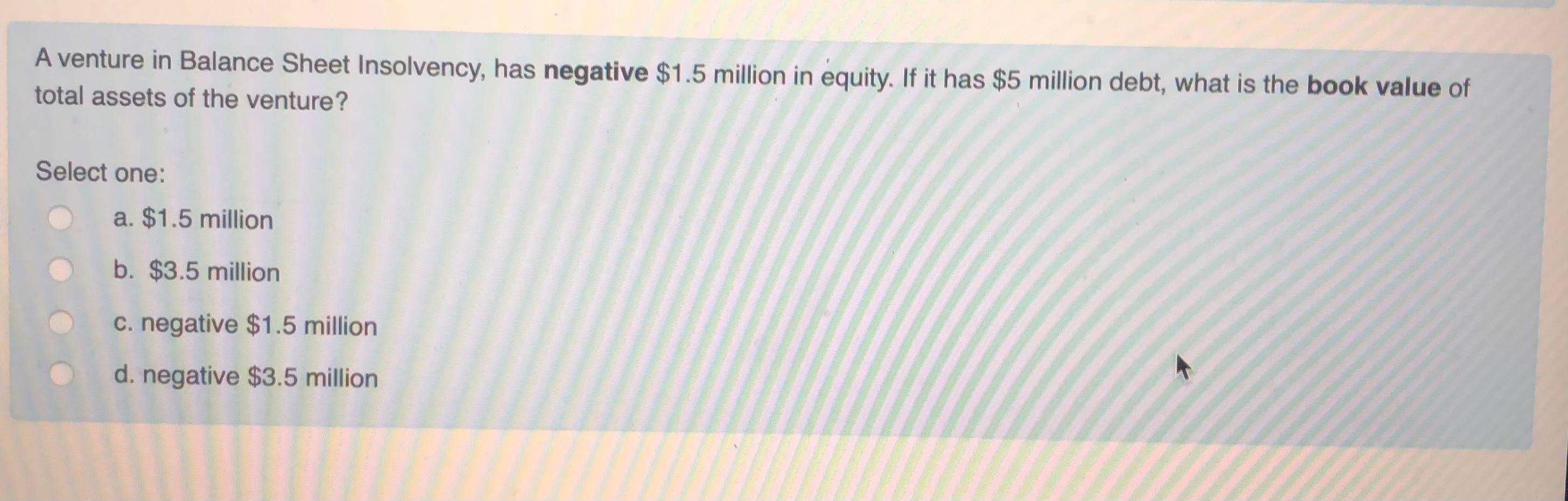 Solved A venture in Balance Sheet Insolvency, has negative