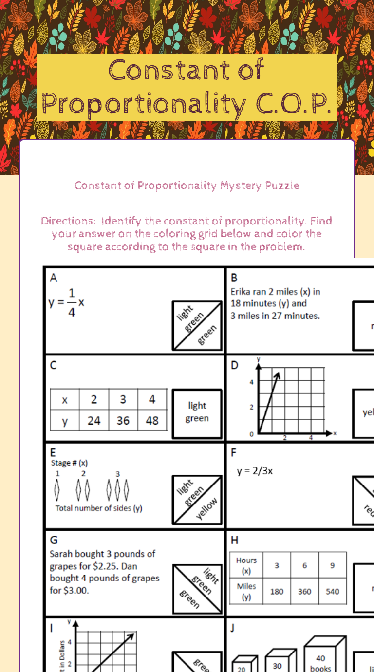 CONSTANT OF PROPORTIONALITY PERFORMANCE TASK 1 Worksheet