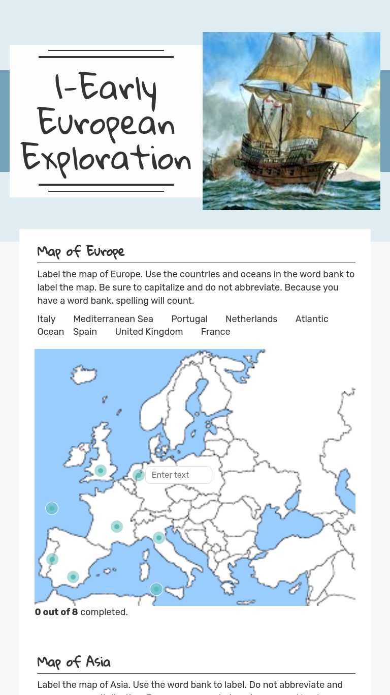 Worksheets can be highly effective tools for high school world history students learning about the age of exploration. On your map label and color the countries of origin: After columbus mistakenly stumbled onto a new continent in 1492 the worlds of europe, africa and america collided. Grab these free printable european explorers worksheets to help students research and learn about.