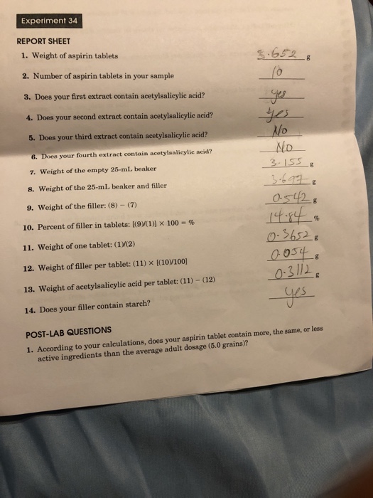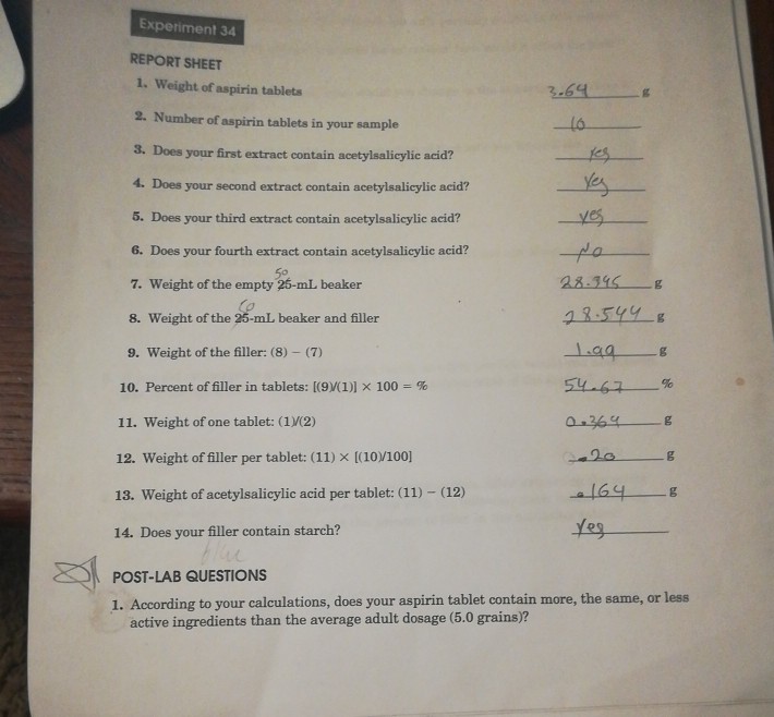 Solved Experiment 34 REPORT SHEET 1. Weight of aspirin