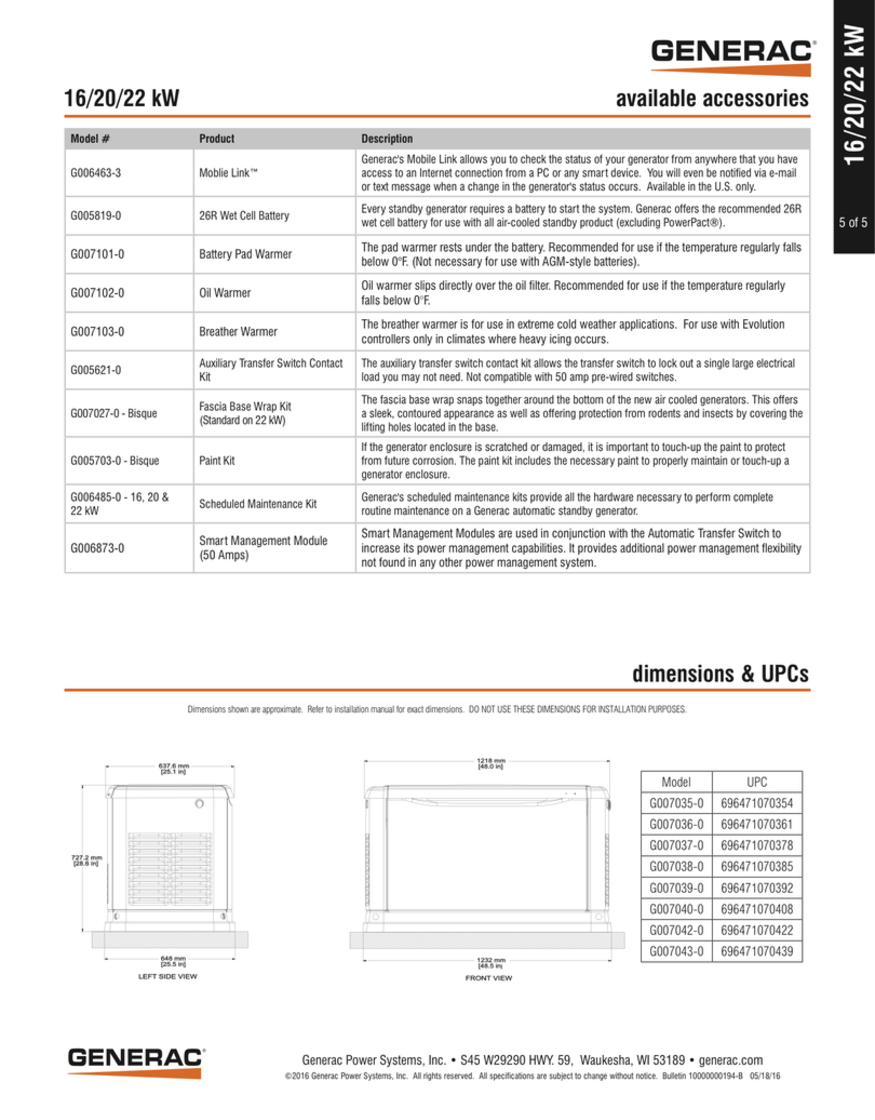 Generac 22Kw Spec Sheet - True powertm electrical technology two line lcd multilingual digital evolutiontm controller (english/spanish/. Web 2018 guardian 22kw generator features and benefits. Web up to eight additional large (240 vac) loads can be managed when used in conjunction with smart management modules (smms).