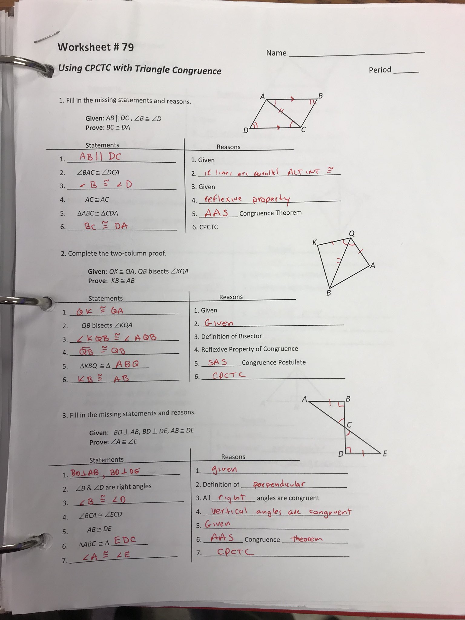 Two Column Proofs Congruent Triangles Worksheets With Answer