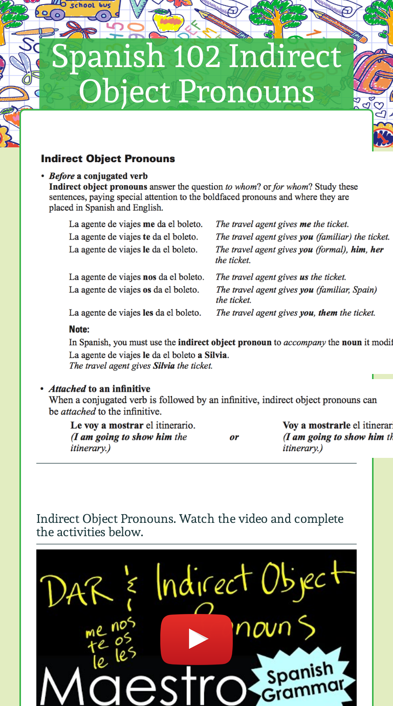 Spanish 102 Indirect Object Pronouns Interactive Worksheet by Brent