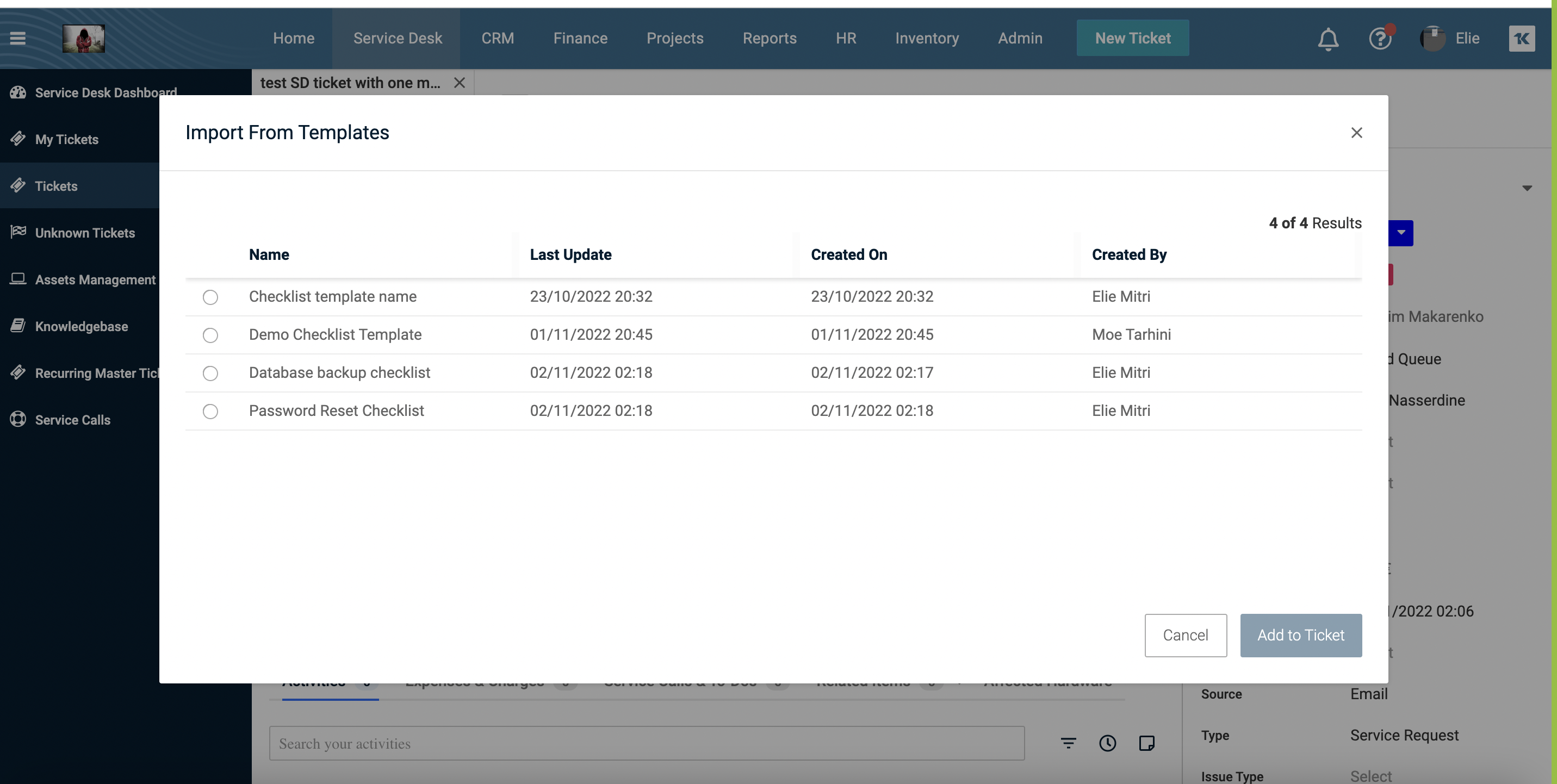 Create a checklist template Kaseya SANDBOX