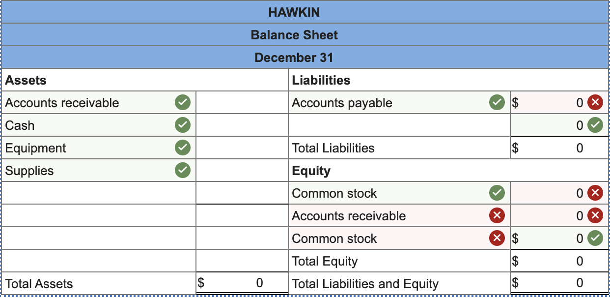 Retained earnings, december 31, equals $8,800. Web use this information to prepare a december 31 balance sheet for hawkin. Web prepare a december 31 balance sheet using the following select accounts and amounts. Commission revenue $ 30,600 accounts.