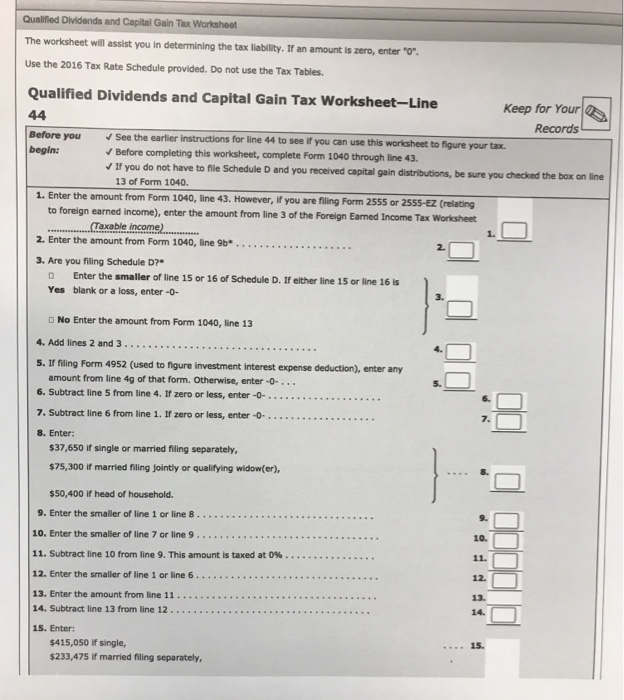Qualified Dividends And Capital Gain Tax Worksheet Line 16 2